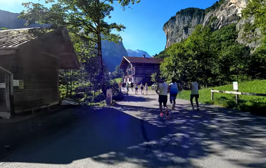 - 5.8km loop to the south and back to Lauterbrunnen is mostly roads and slightly net downhill as far as the railway bridge