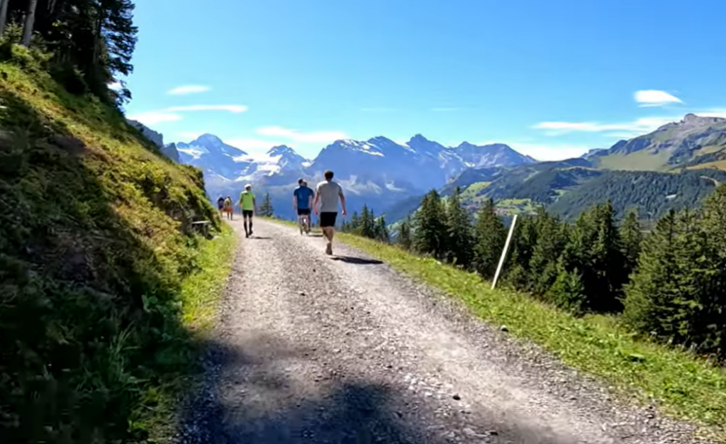 - 2.8km looping into and around Wengen on tarmac roads and paths, undulating but trending upwards (120m net gain)